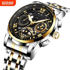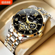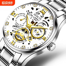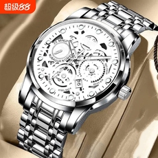 手表男全自动非机械表钢带男款商务防水石英腕表正品名牌镂空男士