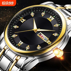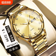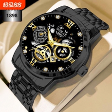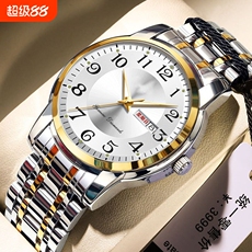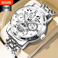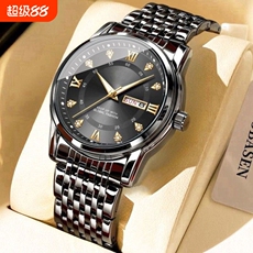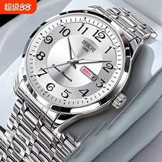 男士手表男正品名牌全自动非机械表钢带男款商务防水石英腕表老人