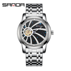 三达热销7004全自动机械星空表盘男士石英机芯手表创意镂空腕表