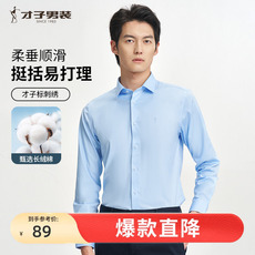 才子男装长袖衬衫男春秋修身商务正装抗皱职场通勤易打理休闲衬衣