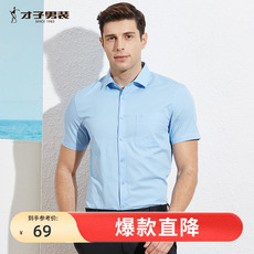 才子奥莱清仓短袖衬衫男夏季修身透气纯色商务正装上班职业白衬衣