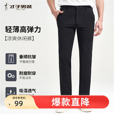 才子清仓轻薄垂感休闲裤男2026夏季修身透气弹力长裤商务薄款裤子