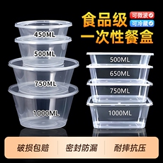 一次性餐盒圆形打包盒圆盒饭盒加厚食品级塑料外卖冰粉碗带盖商用