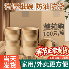 程圆商用一次性纸碗加厚圆形外卖小吃打包餐具饭盒带盖餐盒汤碗
