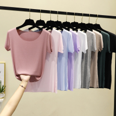 面膜短袖t恤女夏莫代尔无痕大码打底衫纯色修身内搭显瘦薄款上衣