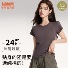 欧英瑜伽短袖棉T恤 紧身内搭打底衫女 高级棉料修身运动上衣
