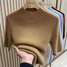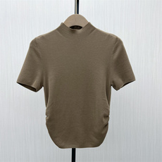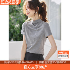 梵姿倪半高领短袖t恤女2025新款春夏针织衫内搭打底修身半袖上衣