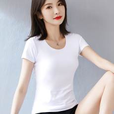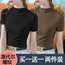 单/两件 莫代尔短袖T恤女修身显瘦打底衫夏季新款韩版纯色上衣女