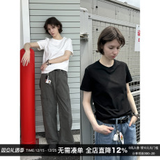 女装2025年新款纯棉黑色t恤女短袖V领夏季紧身纯色半袖修身上衣白