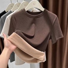 加厚保暖双面磨毛德绒短袖t恤女大码300斤新款爆款秋冬修身打底衫