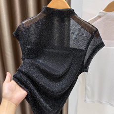 网纱打底衫女2025新款修身圆领短袖t恤吊带裙内搭薄纱透视上衣夏