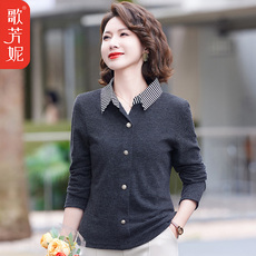 针织真丝长袖衬衫女桑蚕丝打底衫夏季新款中年妈妈装百搭气质上衣