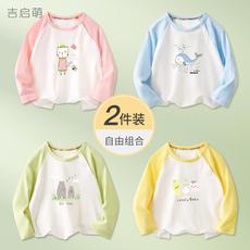 童装100%纯棉拉布布夏季儿童新款长袖t恤印花男女童上衣打底衫