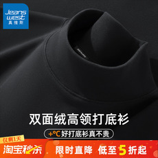 真维斯德绒打底衫男秋冬2025新款高领内搭保暖上衣男士黑色t恤衫