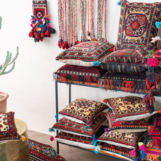 汽车装饰工艺打结抱枕腰靠段染机织抱枕美式客厅沙发靠垫手工靠垫