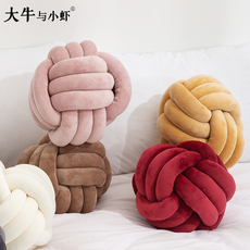 ins网红装饰创意北欧丹麦Knot球打结抱枕沙发球型编织线麻花靠垫