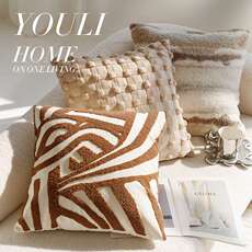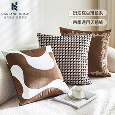 奶油色高级感复古风打结抱枕套沙发床上棕色现代简约客厅沙发靠垫