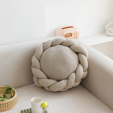ins童趣装饰创意北欧丹麦Knot球打结抱枕沙发球型编织线麻花靠垫
