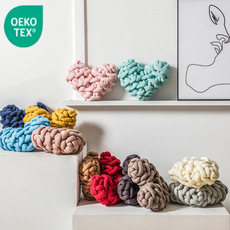 粗毛线冰岛毛线手工编织坐垫打结抱枕方形坐垫灌心棉自制礼物新手