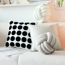 绒亦北欧简约ins风沙发抱枕套球形打结抱枕靠垫枕黑白圆波点腰枕
