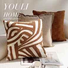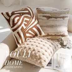 奶油色高级感复古风打结抱枕套沙发床上棕色现代简约客厅沙发靠垫