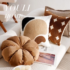 奶油色抱枕高级风打结抱枕套沙发床上棕色床上腰靠枕靠垫枕XM-022
