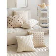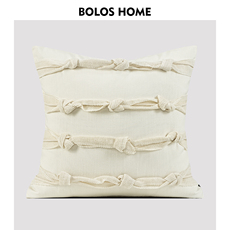 客厅沙发上的抱枕奶油色床上复古风白色打结套沙发棕色腰靠枕床头