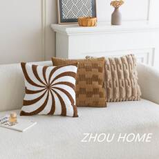 沙发上好看的抱枕雪尼尔几何靠枕扭扭条打结 客厅靠枕套