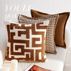 新款 床上复古风白色打结抱枕套沙发棕色腰床头含芯样板房靠枕客
