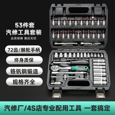 53件套组套工具1/4吋套筒扳手快速棘轮套筒批头工具汽修机车可携