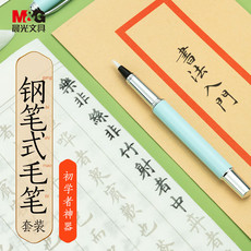 晨光文具钢笔式毛笔套装软笔尼龙毛书法练习笔小楷可加墨成人初学者学生入门字帖练习毛笔纤秀笔抄经AWBY9008