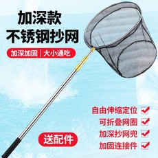 抄网捞鱼网抄网杆伸缩杆全套抄网头渔具用品收缩细眼加深自由垂钓
