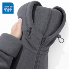 NN真维斯奥粒绒连帽外套男冬季中灰加绒加厚开衫抓绒保暖冲锋内胆