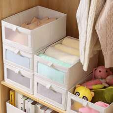 前窗网纱PP板收纳盒棉麻可折叠水洗裤内衣收纳抽屉式衣柜整箱