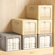 印花可折叠带钢架收纳箱家用衣柜分层整理宿舍储物盒抽屉式收纳筐