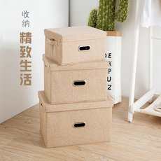 日系棉麻收纳箱可折叠衣柜储物箱抽屉式带盖整理箱衣服玩具收纳盒