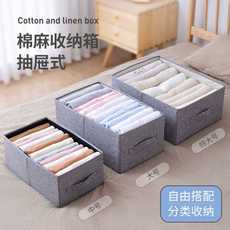 爆款天山棉麻收纳盒衣服收纳盒放衣柜衣物收纳抽屉式可折叠收纳筐