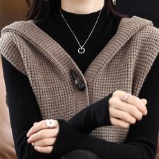 100纯羊毛衫女士连帽披肩春秋新款短款针织开衫外搭薄款上衣外套