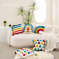 抱枕可爱女生彩虹枕套客厅靠枕小清新簇绒沙发靠垫可拆洗腰枕靠枕