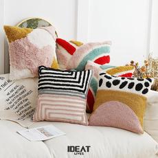 复古北欧风几何簇绒创意雏菊棋盘格彩虹黑白抱枕简约现代沙发流苏
