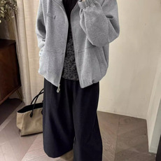 柠波家。廓形厚款灰色休闲连帽拉链卫衣女2025秋宽松百搭开衫外套