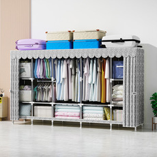 衣柜简易布衣柜钢管加粗固加厚窗帘款无拉链出Q租房用结实耐用柜