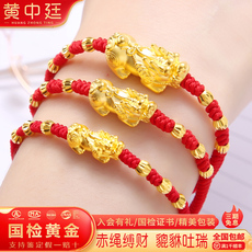 貔貅手链黄金转运珠999足金3D硬金皮丘招财红绳手链男女情侣七夕