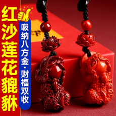 红莲貔貅招财朱砂红砂莲花貔貅挂件平安扣汽车钥匙扣生肖本命年用