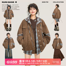 SPELLEDIT2025秋季新品拼色领口袋夹克时尚休闲复古工装风外套女