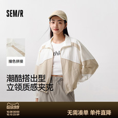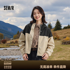 呼呼huhoo 100%再生纤维拼色夹克宽松休闲短外套复古运动风