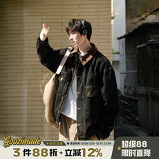 悟空有货日系复古拼色翻领工装夹克男女潮牌宽松bf风情侣休闲外套