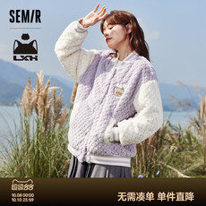 森马罗小黑外套女夹棉夹克宽松冬季2023新款仿兔毛拼色棒球服休闲