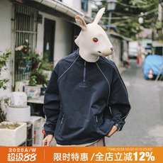 兔先森春秋山系户外拼色半拉链防风夹克男宽松休闲运动反光条外套