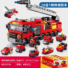 积木玩具拼装男孩女孩小颗粒拼图幼儿园礼物汽车警察消防坦克飞机